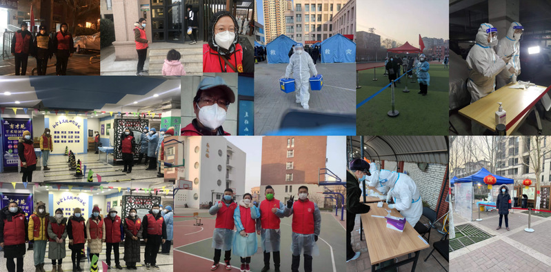 学院中像这样的党员还有很多:学院院长张海明老师在和平区尚友里社区负责试管递送;梅俊平和邹开顺老师在南开区华苑碧华里社区坚持站好5:30-7:30的第一班岗,和居委会一起,增加检测通道,控制喊楼节奏,居民随到随检;刘光华老师积极参加精武镇锦泽苑社区的志愿服务,负责为居民测温,扫场所码,维持现场秩序;李继超老师在张家窝四季花城,作为机动组,负责维持秩序,通知居民下楼做核酸等工作;明宪兵老师变身“大白”,负责将社区的核酸样品安全送往指定医院;李一凡老师因为参加中小学教师资格面试的志愿服务“意外”滞留在津,但她没有丝毫怨言,积极加入到邵公庄街道西青道第四社区志愿服务队伍,负责核酸检测信息的录入;张纳和卢会平两位老师来到格调松间社区,早上5:30就开始集合,协助医生布置检测台,在出口维护秩序,只出不进,防止已检测人员滞留,并维持采样人员保持1米安全距离;陈琮老师在西青区锦城嘉苑社区帮助下发检测顺序条,维持秩序;杨大宝老师在俊城浅水湾社区负责扫描试管条形码,录入检测人员信息以及维持排队秩序;已经递交了入党申请书的焦跃健老师也在积极向党员看齐,在南开区兴南街延生里社区进行志愿服务,帮助通知居民下楼、维持秩序……