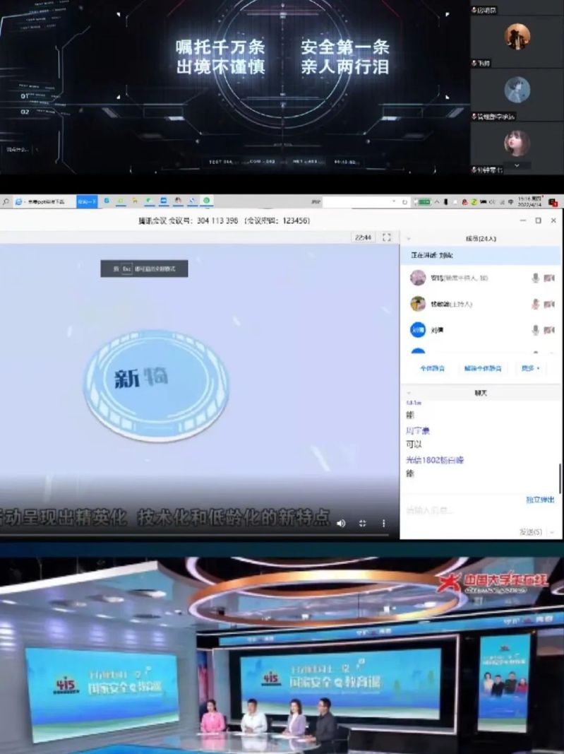 4月13日至4月15日,偷拍美女 组织学生召开了安全教育主题班会。学院以班级为单位,由班委带领全班同学观看了“千万师生同上一堂国家安全教育课”为主题的公开课和“反邪教警示教育进校园”专题的警示教育宣传片,以提高师生防范邪教的意识和能力。此次活动也旨在提高学生们的保密意识,引导学生进一步增强安全意识和法制观念,自觉守法护法。