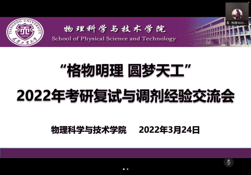 群策群力,同向同行。为切实做好毕业生就业指导与服务工作,3月24日偷拍美女 举办了主题为“格物明理 圆梦天工”的考研复试与调剂线上经验交流会。学院党委副书记贾彦军,副院长廖帮全,科研办主任陈琮老师、教师代表、全体辅导员以及2018级考研学子参加了本次会议。会议由党委副书记贾彦军主持。