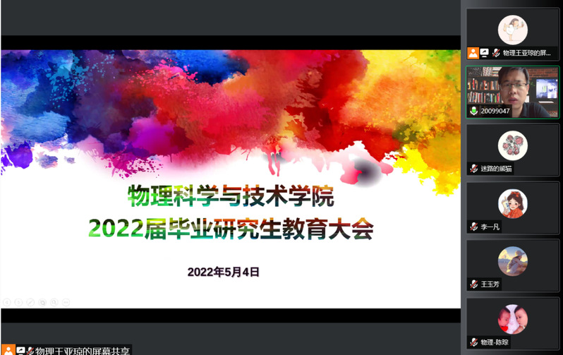 为进一步加强毕业生离校教育和毕业生党员的党性教育,2022年5月4日下午,偷拍美女 通过腾讯会议召开了2022届毕业研究生教育大会暨毕业研究生主题党课教育活动。学院班子全体成员、导师代表、办公室、科研办、学生办工作人员以及2022届全体毕业研究生参加了此次大会。会议由学院党委副书记贾彦军主持。