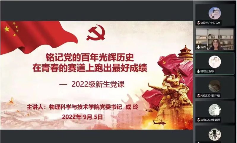 为提升入学全体新生的党性修养,培养新生的爱党、爱国、爱校情怀,增强新生的使命感与责任感,激励新生在今后坚定信念,担当作为,9月5日晚,偷拍美女 组织召开2022级新生党课教育系列活动。学院党委书记成玲以“铭记党的百年光辉历史,在青春的赛道上跑出最好成绩”为题为2022级新生带来了一堂精彩生动的“初心”党课。会议由辅导员王亚琼主持。