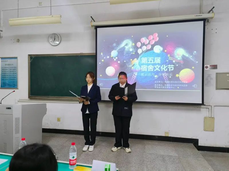 5月18日晚7点,由偷拍美女 举办的第五届“宿舍文化节”的决赛在第一公共教学楼B105激情上演。公寓管理服务中心负责人郭晓辉老师、辅导员李一凡老师、团委学生会主席团成员熊立欣学姐、团委学生会主席团成员暴虹骏学长以及上一届宿舍文化节冠军得主田佳禾学姐以评委身份出席本场比赛。